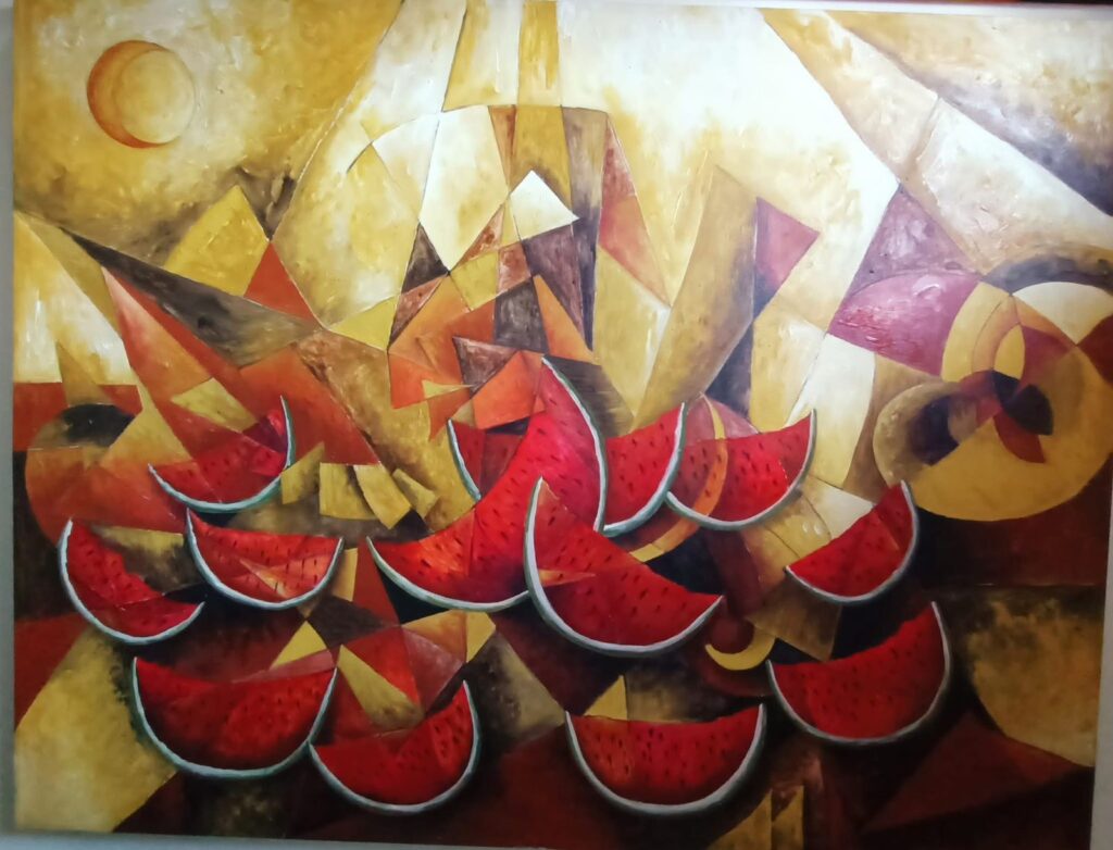 “Soy una artista geométrica, impresionista y figurativa a la vez”, explica con una sonrisa. “Trabajo a partir de manchas, de estructuras, y dejo que las formas vayan apareciendo solas. A veces planeo, pero casi siempre dejo que la obra me hable”.
