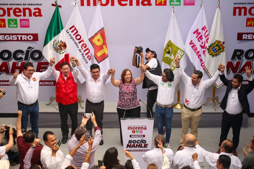 Este viernes en la explanada del OPLEV, Rocío Nahle realizó su registro ante este organismo como candidata de la coalición «Sigamos Haciendo Historia en Veracruz» conformada por los partidos de Morena, PT, Verde y Fuerza X México.
