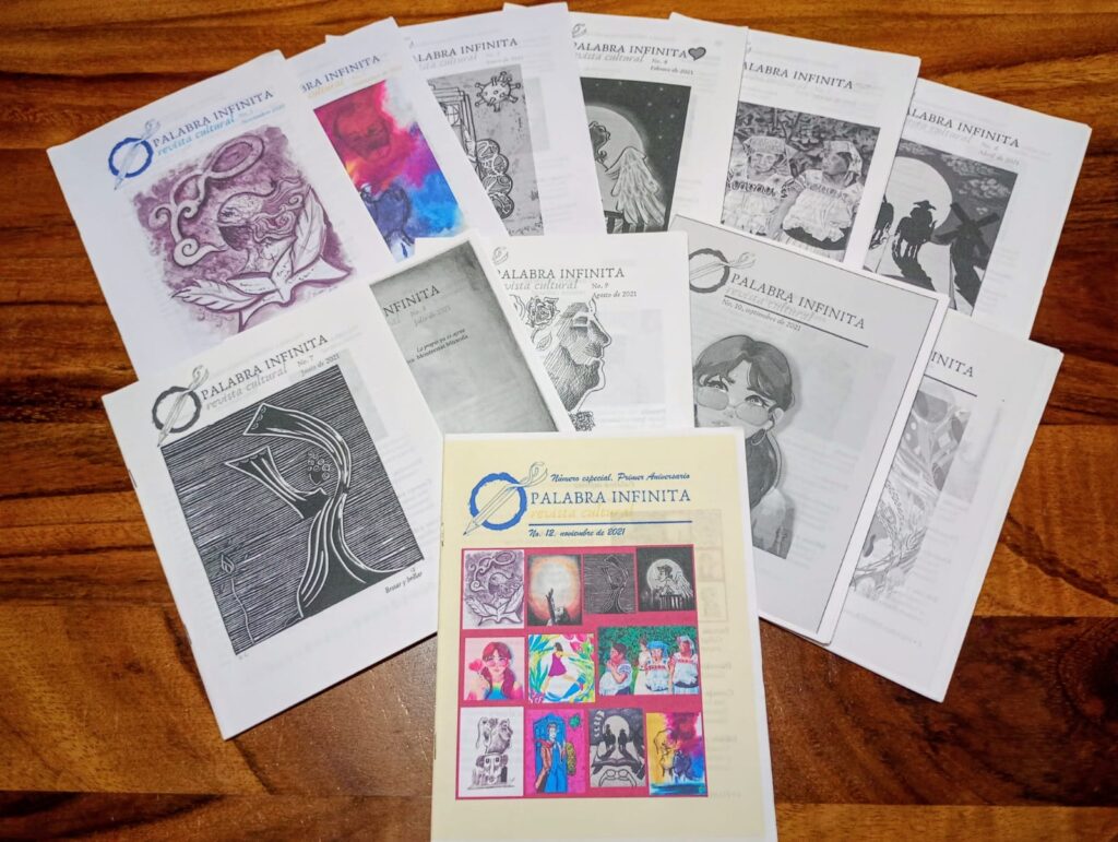 Además, dirige la revista literaria Palabra Infinita, que celebra y difunde creaciones de fotógrafos, pintores y escritores.