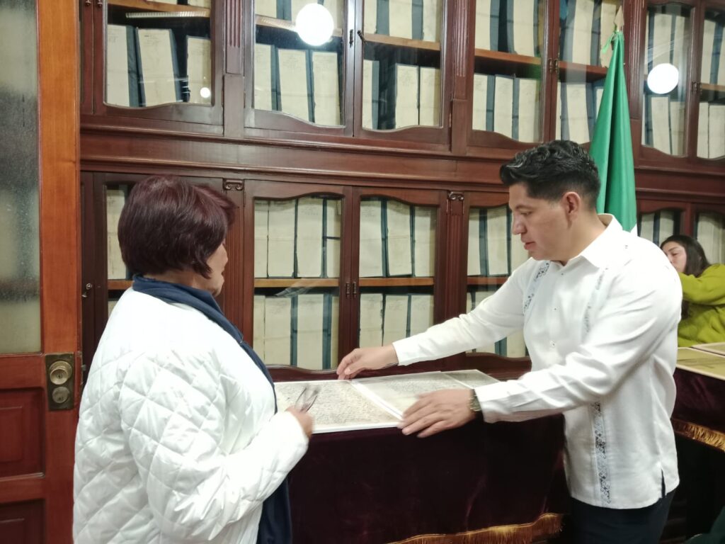 Tras entrevistarse con el presidente Manuel Alonso Cerezo, realizaron un recorrido por el archivo histórico donde intercambiaron impresiones sobre la importancia del hecho de la firma con la que inició la Independencia, Reyes Carmona reconoció el trabajo de conservación del lugar.