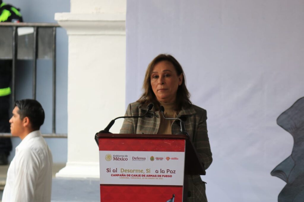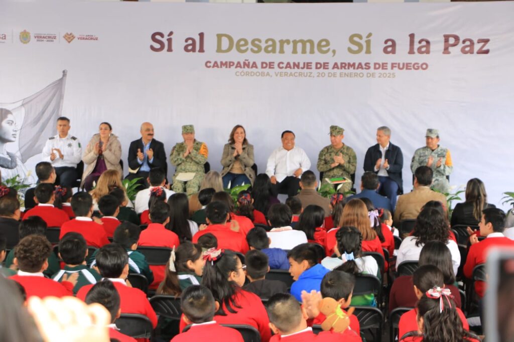 «Por eso es importante que en esta campaña, también los adolescentes o los jóvenes, estén conscientes de que el camino es el estudio, de que tenemos, nuestros niños y niñas, tenemos opciones, que hay escuela, que hay capacitación, que no es la calle ni conductas antisociales el camino adecuado y que en esta campaña estamos invitando a la población para que cambie cualquier arma o armamento que se tenga en su domicilio por un electrodoméstico, que menos armas estén en circulación, que eso no debe de haber en los hogares veracruzanos eso es muy importante y se inicia aquí en Córdoba».