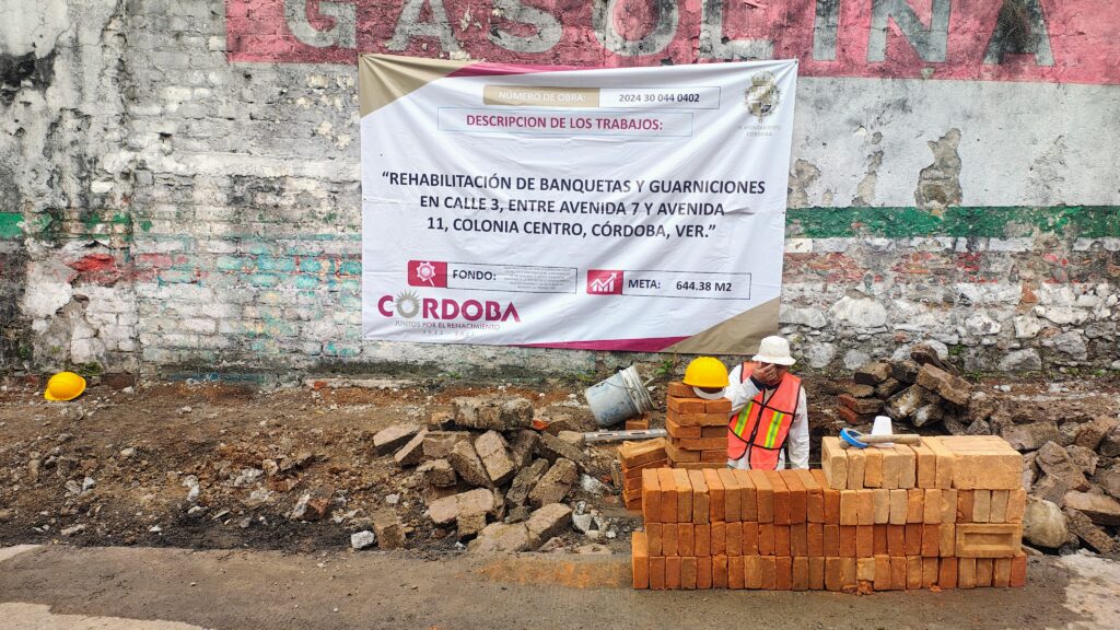 Córdoba, Ver.- 14 de Enero 2025.- La Dirección de Obras Públicas del Ayuntamiento de Córdoba reportó que se lleva un buen avance en la obra de rehabilitación de banquetas y guarniciones de la calle 3 entre avenida 7 y 11 de la colonia Centro.
