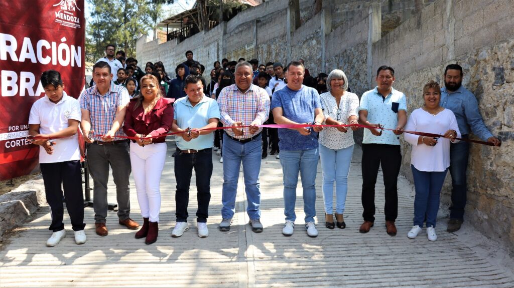 Camerino Z. Mendoza, Ver. 29 de febrero 2024.- Autoridades municipales que preside el C. Héctor Rodríguez Cortés, acudieron este jueves a la congregación de La Cuesta, para inaugurar dos importantes obras de pavimentación y muro de contención, peticiones de los vecinos y estudiantes de la Telesecundaria “5 de mayo”.