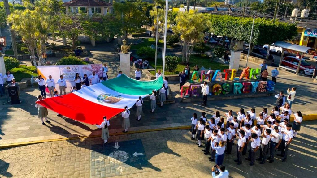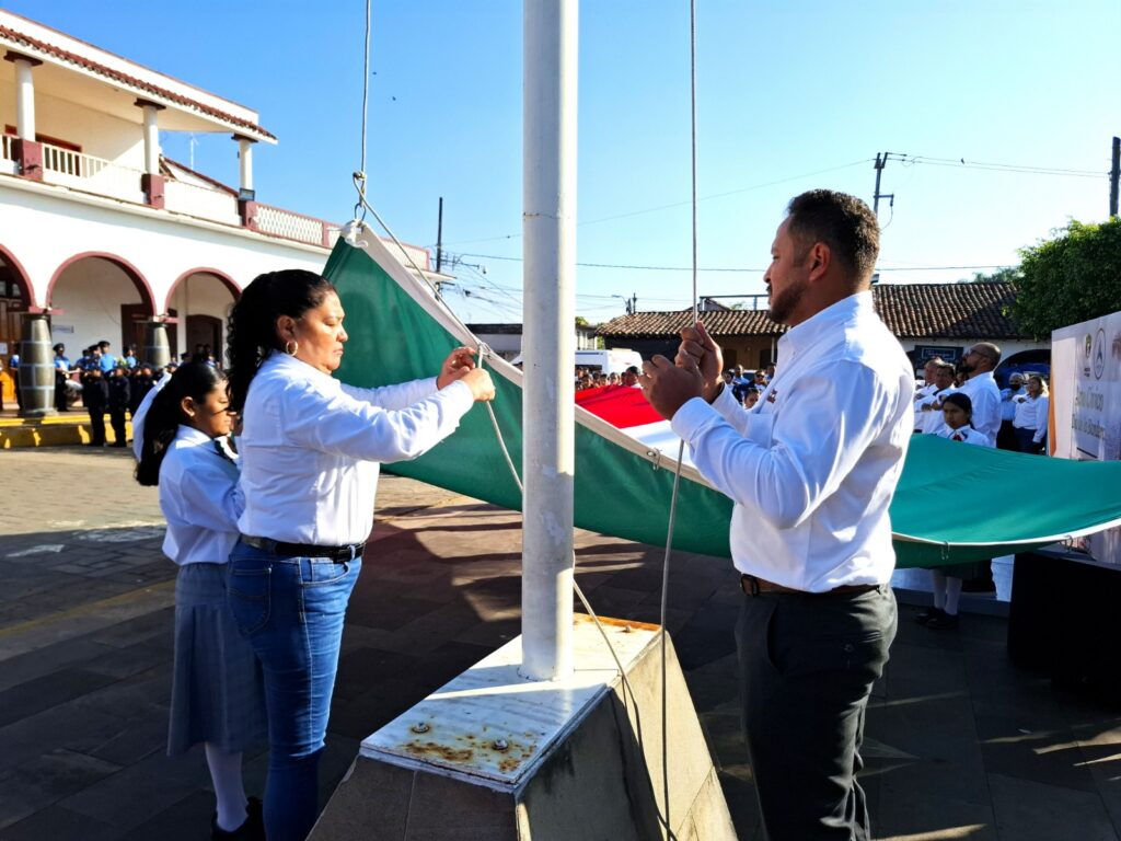 Amatlán de los Reyes, Ver. – En el marco del Día de la Bandera, el Honorable Ayuntamiento de Amatlán de los Reyes, encabezado por la Presidenta Municipal, C. Guillermina Méndez López, realizó una solemne ceremonia de izamiento y honores a la bandera en la explanada de la plaza de armas Pascual de los Santos, reafirmando los valores de unidad e identidad nacional.