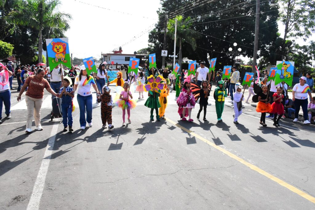 Con la participación de 11 preescolares, estancias infantiles y primarias, se llevó a cabo el desfile conmemorativo al comienzo de la Primavera. Los niños y niñas vistieron elegantes trajes alusivos a flores, mariposas, animalitos de la granja, abejas, así como también, hubo escuelas que representaron el colorido cultural y artístico de diversos países.