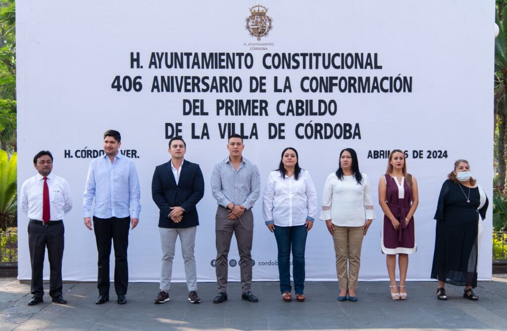 H. Córdoba, Ver. 26 de abril de 2024. – El Ayuntamiento de Córdoba conmemoró hoy el 406 aniversario de la conformación del primer Cabildo de la Villa de Córdoba; alumnos de la escuela primaria Francisca Arévalo de Sánchez, condujeron el acto cívico en la explanada del parque 21 de mayo y el izamiento de bandera corrió a cargo de la regiduría cuarta.