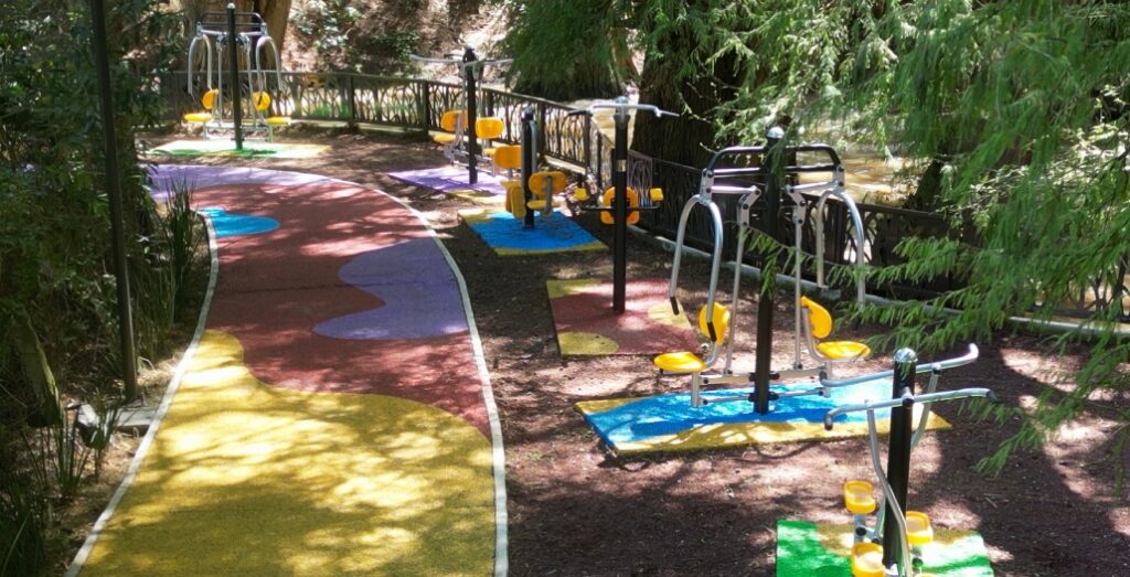 El parque está equipado con puentes colgantes de bambú y estructuras metálicas, áreas de juegos infantiles, ejercitadores al aire libre y rincones ideales para tomar fotografías inolvidables.