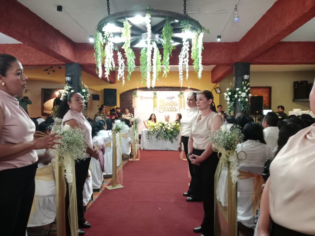 Ante el número de parejas participantes, el lugar donde se desarrolló la ceremonia y recepción estuvo totalmente lleno, pues algunos familiares quisieron acompañar a los contrayentes en uno de los momentos más importantes, sellar su amor.