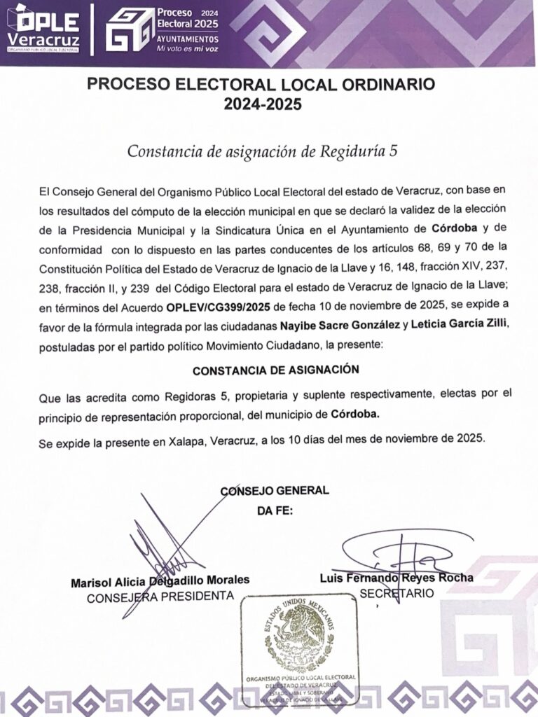 Home » El día de hoy recibí mi constancia como Regidora Quinta de Córdoba