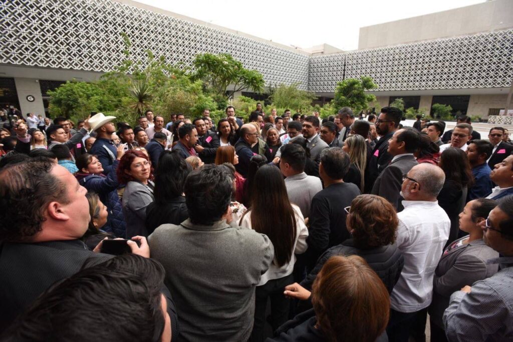 A su llegada, el recinto legislativo se cimbró ante el grito de respaldo a los diputados, entre ellos a Ricardo Monreal Ávila, líder del grupo parlamentario de Morena; los más de 500 docentes presentes corearon: “¡Ricardo, amigo, el magisterio está contigo!” y “¡Zenyazen, amigo, el magisterio está contigo!”. Las muestras de agradecimiento y respaldo también se hicieron extensivas al legislador Pedro Haces, a quien el magisterio agradeció su apoyo ante esta reforma.