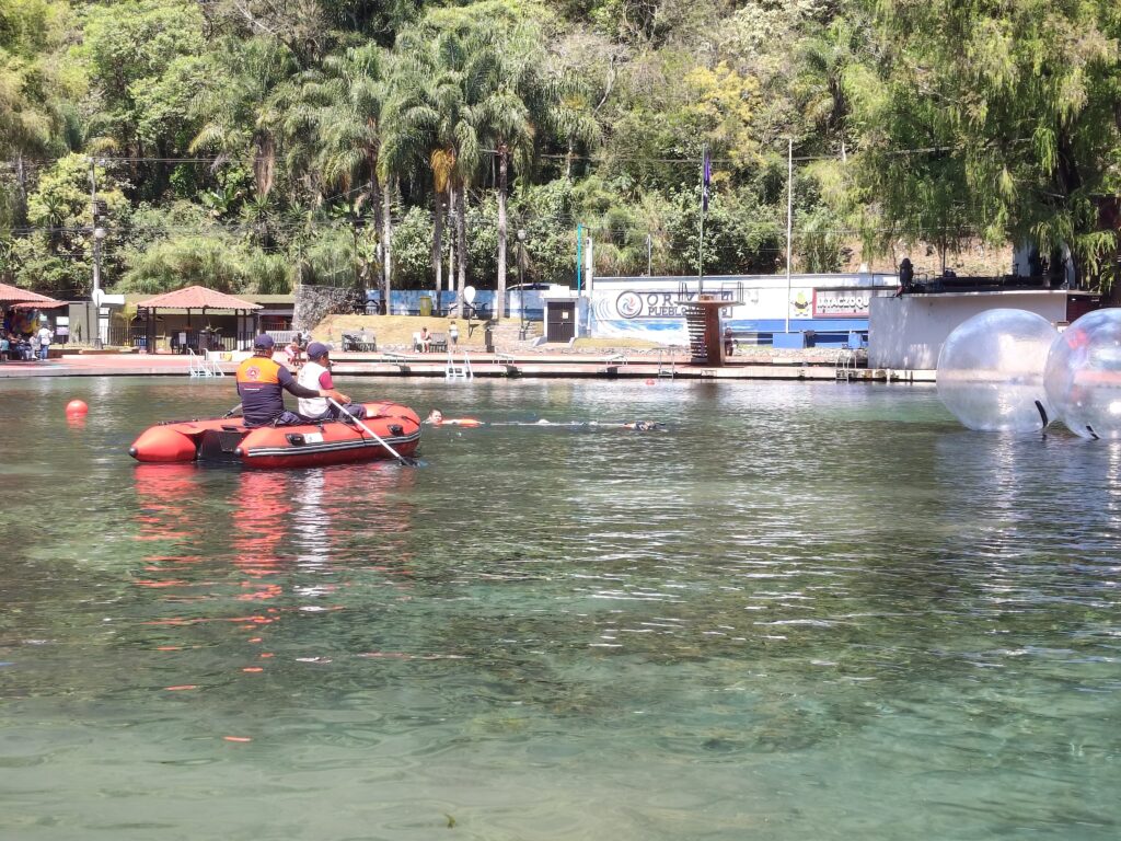 Durante la jornada, los elementos realizaron simulacros que incluyeron el rescate de personas en riesgo dentro del agua, el uso de chalecos salvavidas, cuerdas y otros implementos esenciales para este tipo de intervenciones. Asimismo, se reforzaron conocimientos en materia de primeros auxilios y coordinación en equipo, aspectos fundamentales para salvaguardar la integridad de los visitantes.
