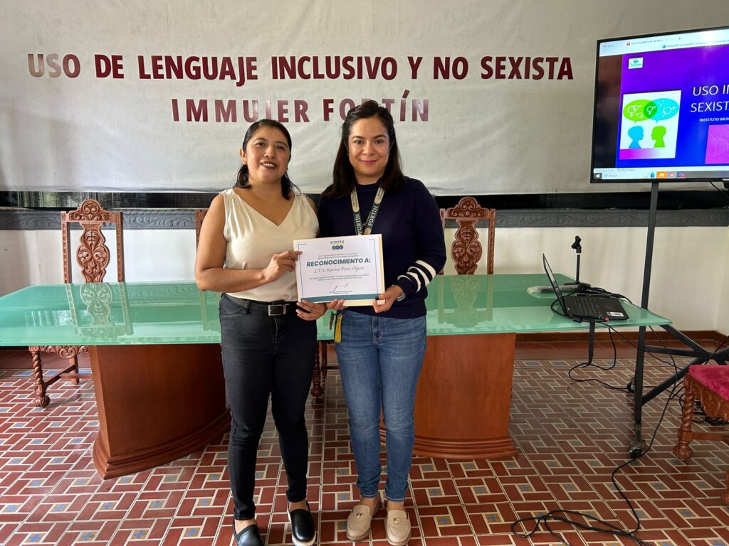 16 de agosto de 2024, Fortín, Ver. – Este viernes, autoridades municipales recibieron una plática sobre el uso incluyente y no sexista del lenguaje, misma que fue promovida por el Instituto Municipal de la Mujer de Fortín, con la finalidad de utilizar adecuadamente los términos correspondientes para dirigirse a las personas que acuden a solicitar apoyos, y/o información a las oficinas gubernamentales.