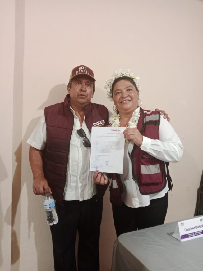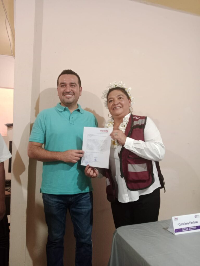 Acompañada por su suplente profesora Reina Tejeda; Enrique Espinosa, como candidato a síndico; Yadira Bernabé, Abraham, María Fernanda Hernández Muñoz, Gilberto Ramírez como candidatos a regidores, recorrieron las principales calles de la cabecera municipal para presentarse ante el OPLE.