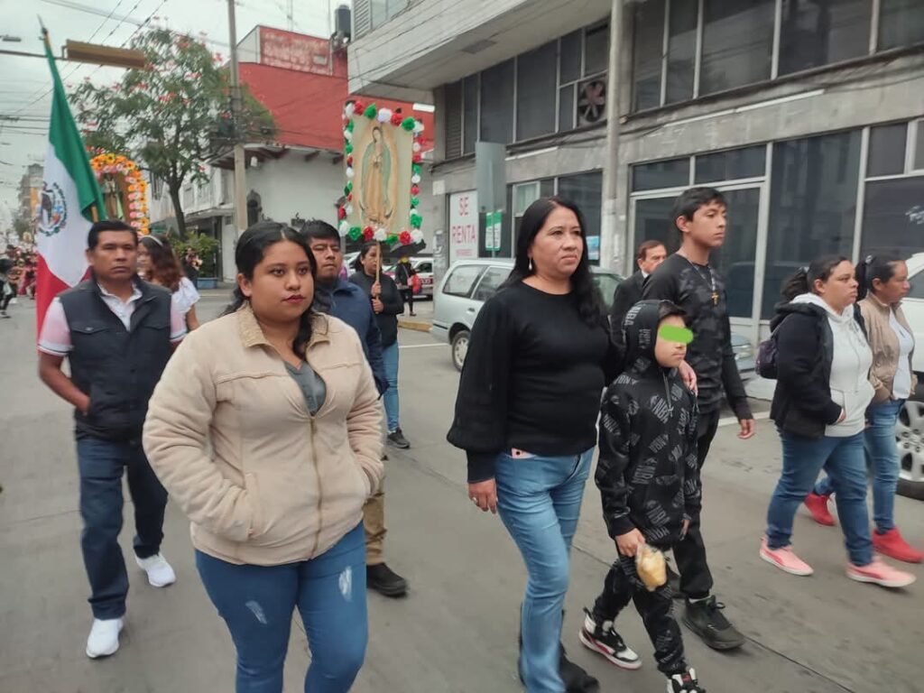 La imagen de la virgen de Guadalupe y San Diego fueron cargadas en hombros hasta la iglesia mencionada, adornados con flores motivaron la fé de los guadalupanos. Al contingente se unieron ciudadanos devotos de la Virgen Morena a quien le atribuyen diversos milagros.