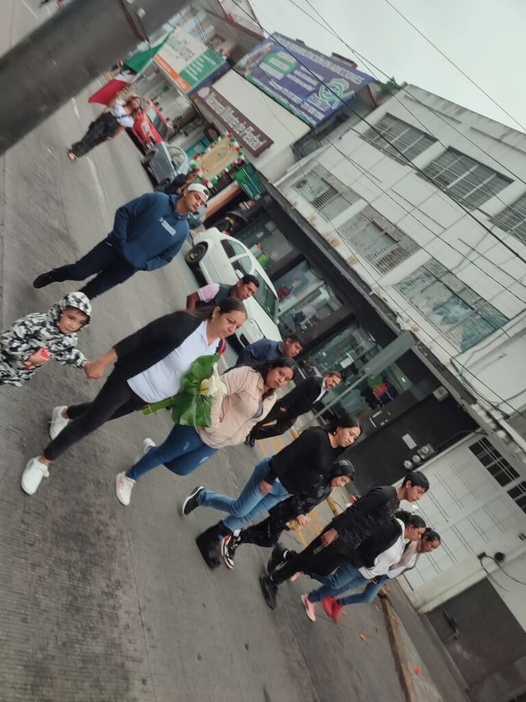 Martinez Ramírez caminó junto a decenas de hombres y mujeres que forman parte del personal del municipio, amenizado con banda de guerra, grupo de danzantes se recorrió las calles con la única finalidad de darle gracias a la virgen morena por lo concedido previos días a su celebración.