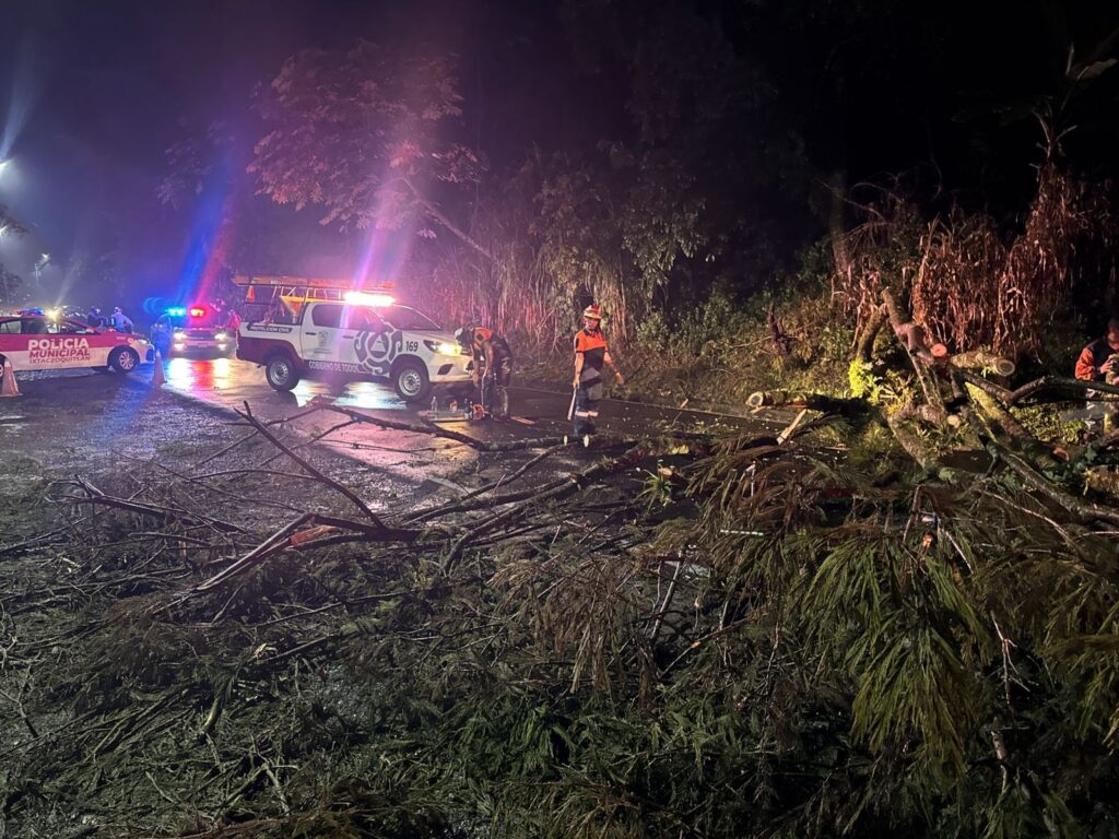 Ixtaczoquitlán – Elementos de Protección Civil Municipal se encuentran realizando el retiro de un árbol caído, sobre la carretera que dirige a Cuautlapan.