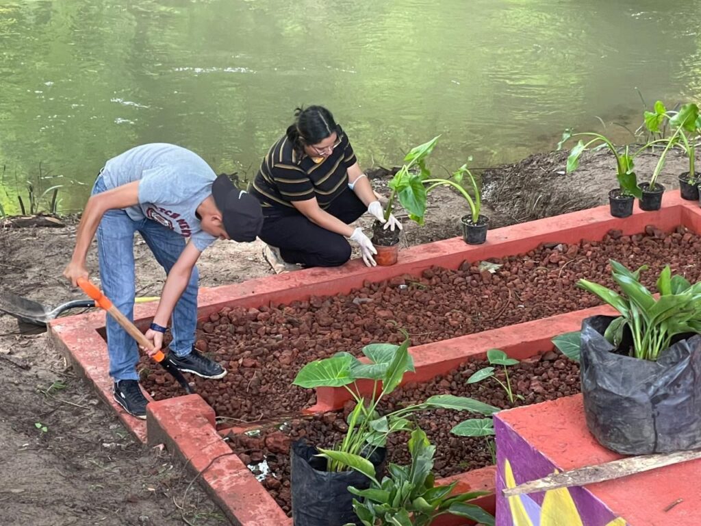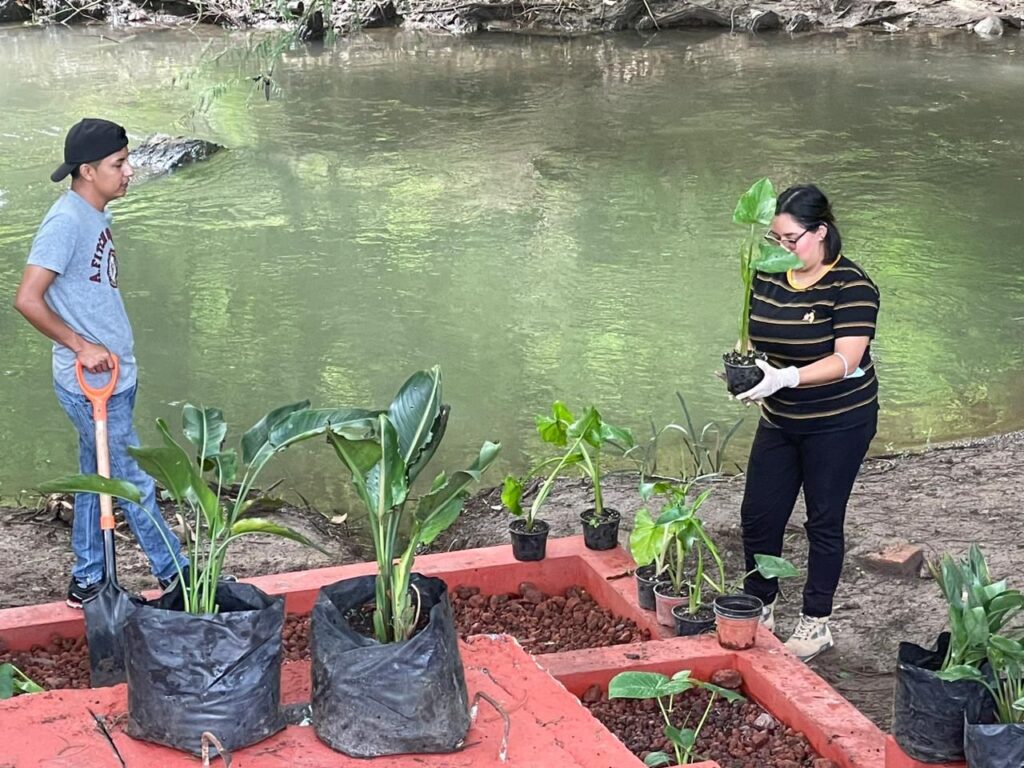 Camerino Z. Mendoza, 25 de julio de 2024.- Un grupo de 15 estudiantes y docentes de las carreras de ingeniería en desarrollo comunitario e innovación agrícola sustentable, pertenecientes al Instituto Tecnológico Superior de Zongolica (ITSZ) realizaron la plantación de especies vegetales acuáticas para la habilitación de un sistema de humedales artificiales, como parte del proyecto Ciudad de los Ahuehuetes.