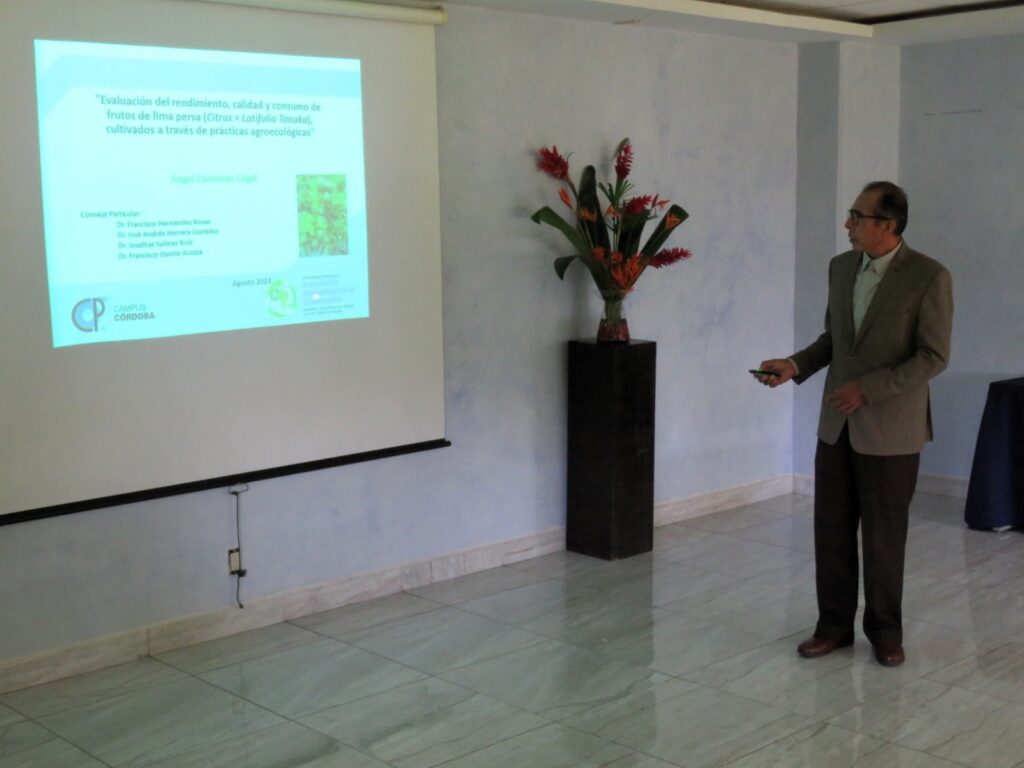 El Maestro en Ciencias de los Alimentos por el Instituto Tecnológico de Veracruz presentó la tesis titulada “Evaluación del rendimiento, calidad y consumo de frutos de lima persa (Citrus × latifolia Tanaka), cultivados a través de prácticas agroecológicas”.