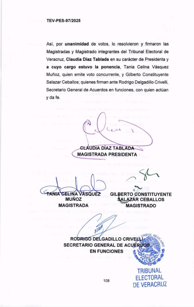 El Tribunal Electoral de Veracruz (TEV) resolvió por unanimidad el expediente TEV-PES-97/2025, confirmando la existencia de Violencia Política contra las Mujeres por Razón de Género (VPMRG) en el municipio de Coetzala.