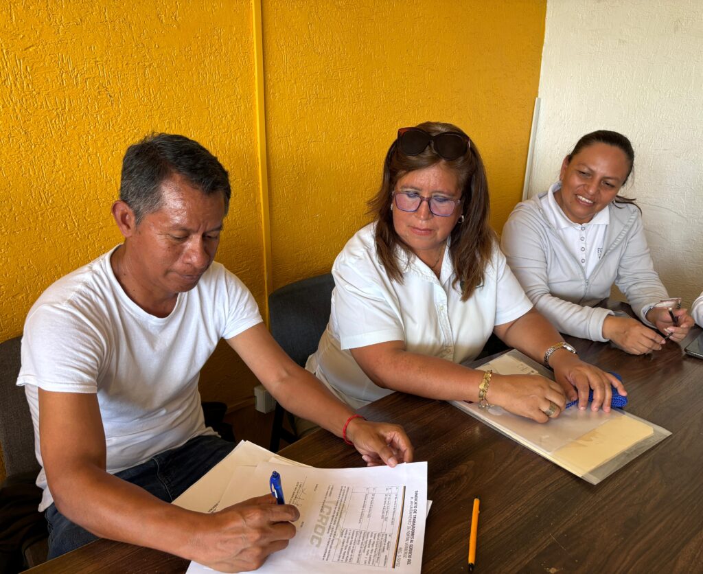 El licenciado Ervey García Castro, quien funge como asesor jurídico del Sindicato se celebró la firma de los documentos oficiales para realizar el cambio de Secretario General de acuerdo, a los estatutos del organismo y con ello, mantener fortalecidos los derechos labores de los trabajadores al servicio del Ayuntamiento.