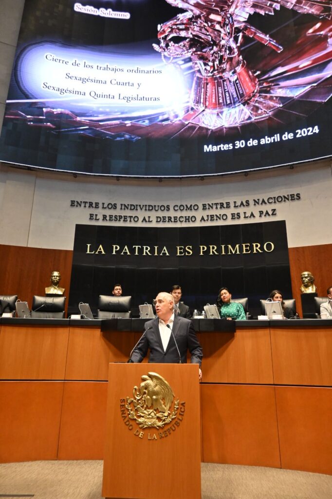 Durante su participación en el cierre de los trabajos ordinarios, el legislador veracruzano agradeció a todos los trabajadores y colaboradores del Senado de la República, así como a sus compañeros de bancada y demás legisladores.