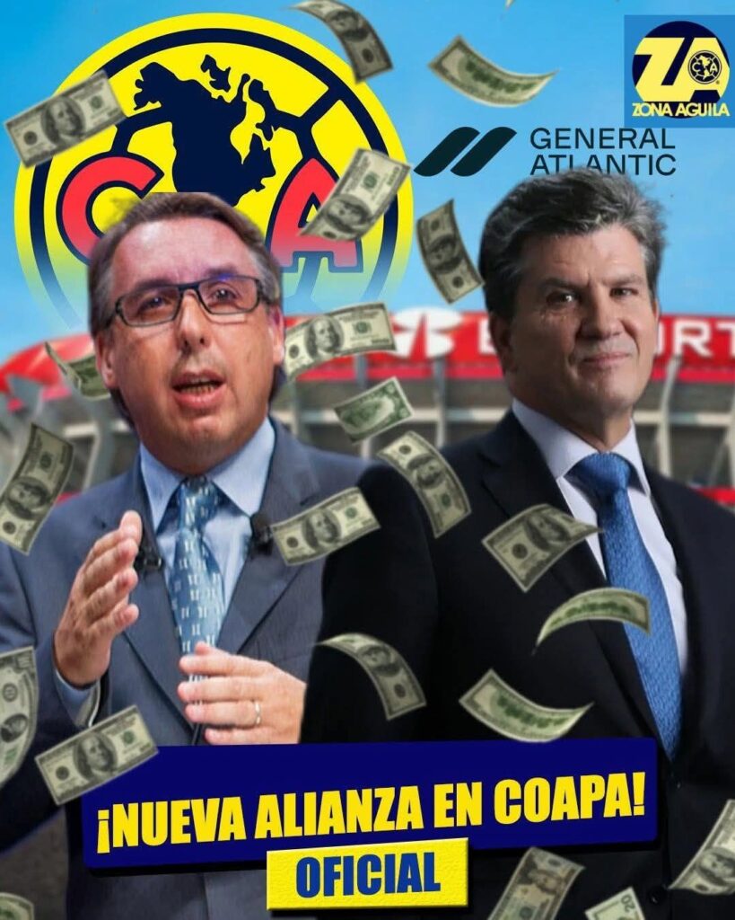 El Club América da un paso al futuro sin perder su esencia. 🦅 Se anunció una ALIANZA HISTÓRICA estratégica con General Atlantic y The Kraft Analytics Group (Dueños de los Patriotas de Nueva Inglaterra de la NFL) adquieren el 49% de las acciones del América, sumando visión y experiencia global, ingresando miles de millones de dólares 💵 a las arcas azulcremas.