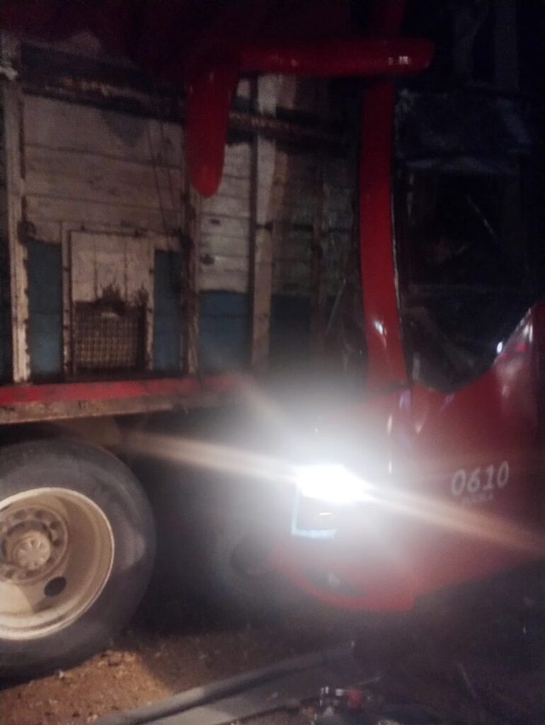 Lamentablemente, el conductor del autobús perdió la vida al impacto por alcance contra un Tractocamión que remolcaba dos jaulas graneleras, hasta el momento se desconocen las causas del fatal accidente entre ambas unidades.