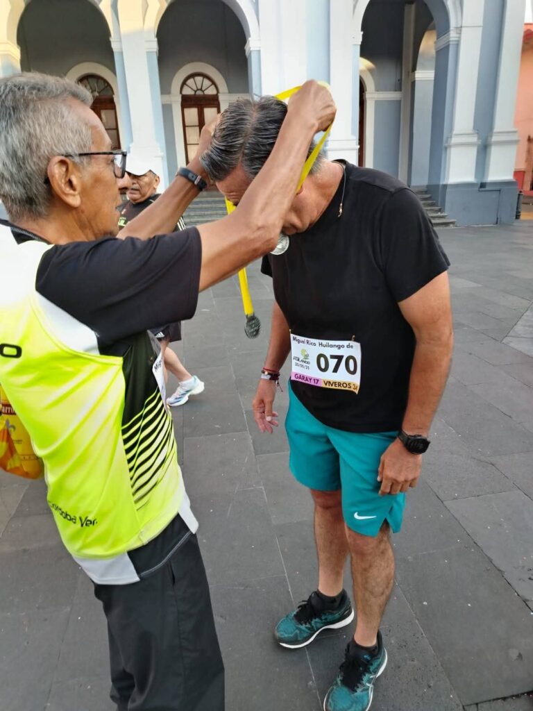Córdoba, Ver.- Como un homenaje en vida a Don Miguel Mario Rico Marinero, de 77 años quien se mantiene activo en carreras atléticas, integrantes del Club Atlético y Deportivo Huilango más de 170 participantes se concentraron en el parque 21 de mayo para salir a recorrido por las principales calles y llegar al mismo lugar para celebrar la vida.