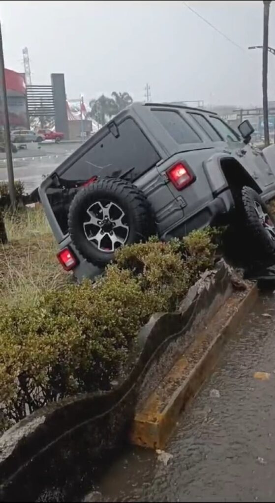 Córdoba, Ver.- Debido a la alta velocidad y la lluvia, el conductor de este vehículo no controló la unidad y salió del bulevar Tratados de Córdoba.